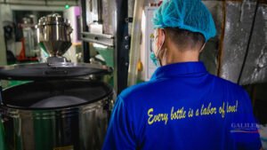 After the bottles are filled and capped, they undergo a series of finishing steps:
